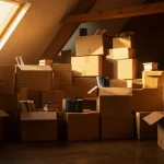 Moving boxes next to large window